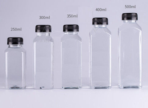 12oz BPA MIỄN PHÍ Chai nước ép trái cây bằng nhựa PET vuông của Pháp cho Chai nước giải khát bằng nhựa trái cây màu cam