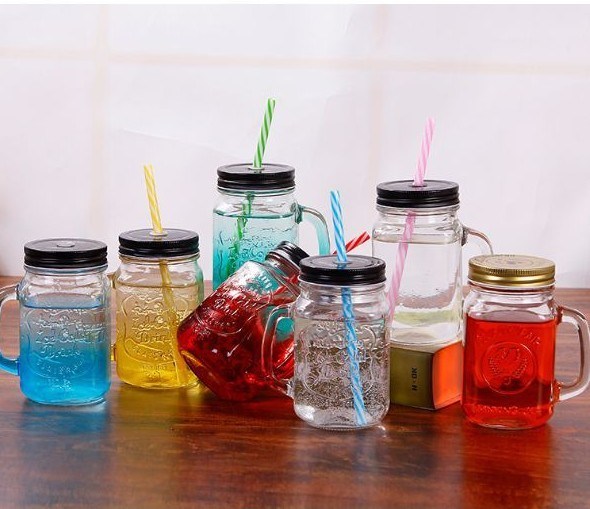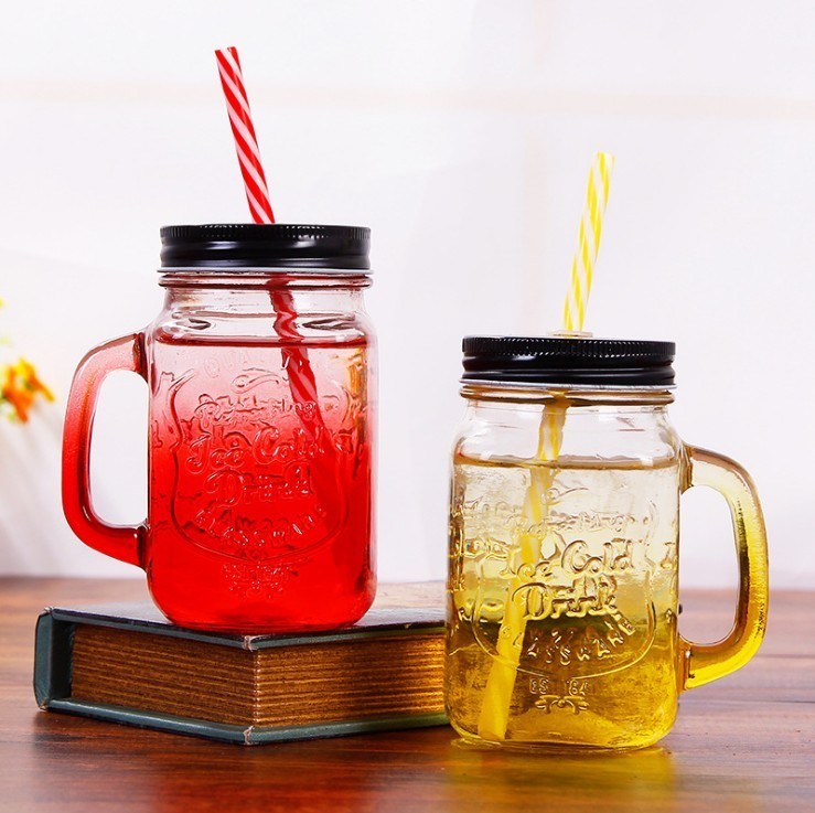 Mason Jar Mugs đầy màu sắc với tay cầm Chai lưu trữ thủy tinh miệng thông thường