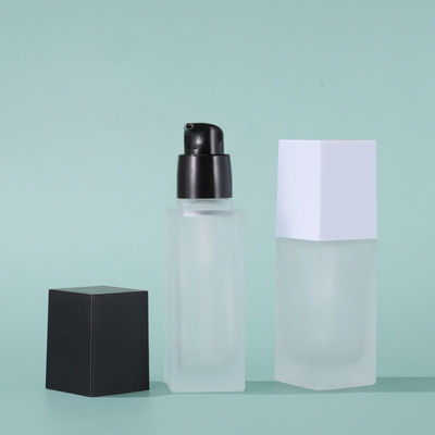 Hình vuông nhũ tương trong suốt Frosted Pump Thủy tinh Hộp đựng mỹ phẩm Chai nước hoa hồng