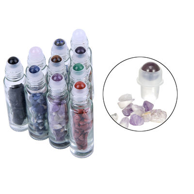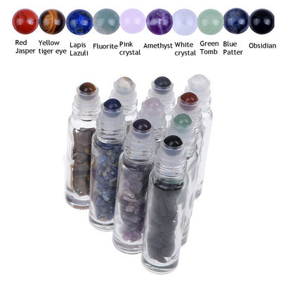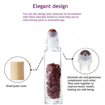 Cuộn thủy tinh trên chai với chai lăn tinh dầu đá quý có nắp tre