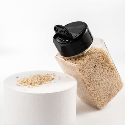 Nắp của những lọ gia vị nhựa này là hai mặt lật úp để lắc hoặc đổ gia vị.