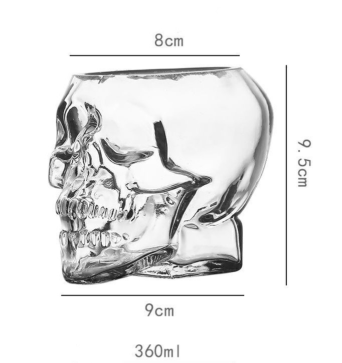 Được làm bằng thủy tinh borosilicate chất lượng cao, hình đầu lâu trong suốt tạo cảm giác độc đáo cho thiết kế.Có thể được sử dụng trong quán bar hoặc nhà.Với công suất50ml 80ml 150ml 350ml 700ml,nó có thể đựng cocktail, rượu whisky, rượu tequila và nhiều loại đồ uống trái cây khác nhau.