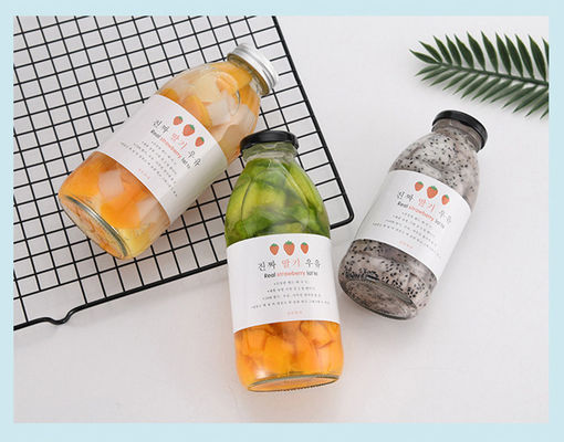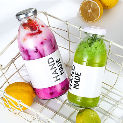 300ml 350ml 500ml chai nước giải khát hình tròn có nhãn sữa chua thủy tinh Chai sữa lắc chai sữa