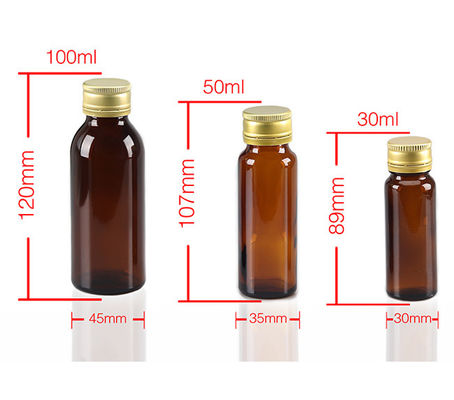 20ml 30ml 50ml 100ml Chai thủy tinh tròn màu hổ phách màu nâu Boston Chai xi-rô dạng lỏng có nắp vặn cho thuốc